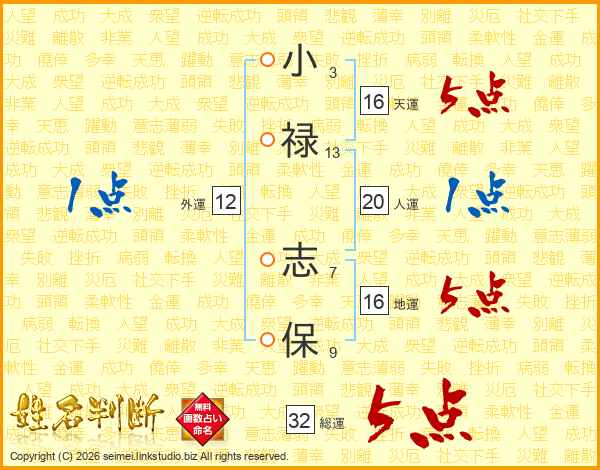 小(3画)禄(13画) 志(7画)保(9画)