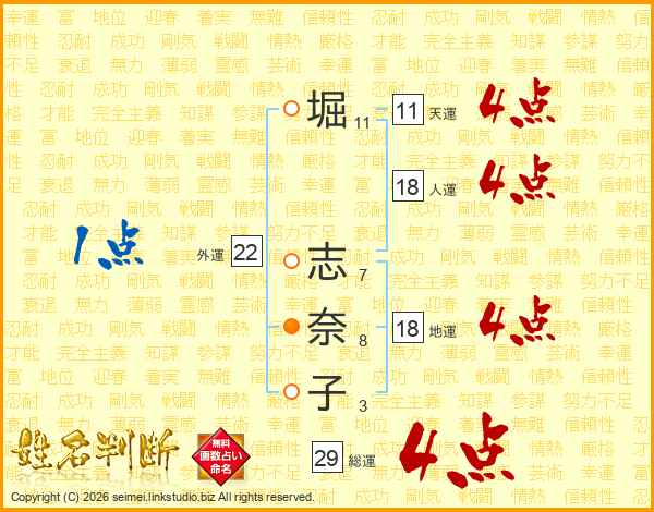 堀志奈子さんの総運は29画の4点!