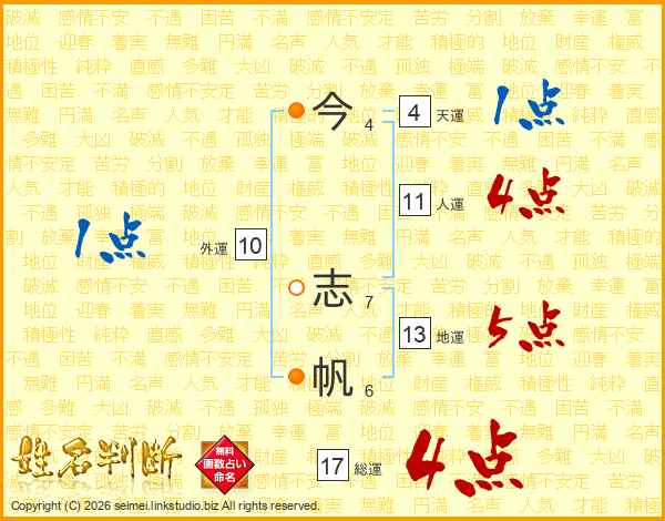 今志帆さんの総運は17画の4点!
