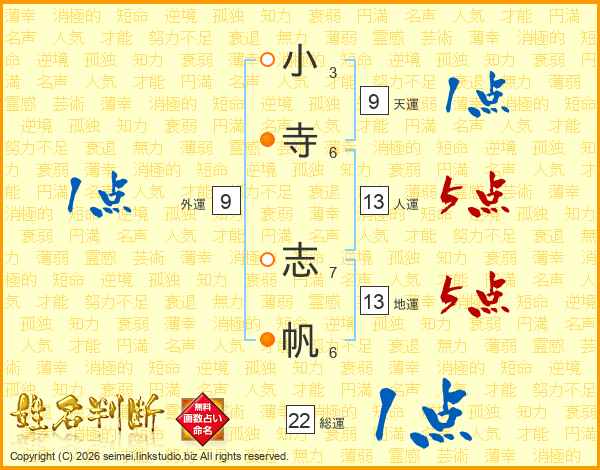 小寺志帆さんの総運は22画の1点!
