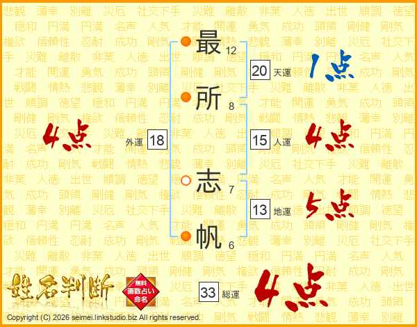最所志帆さんの総運は33画の4点!