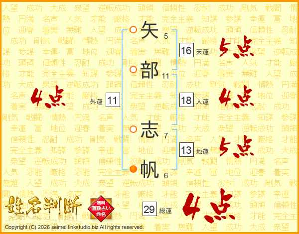 矢部志帆さんの総運は29画の4点!