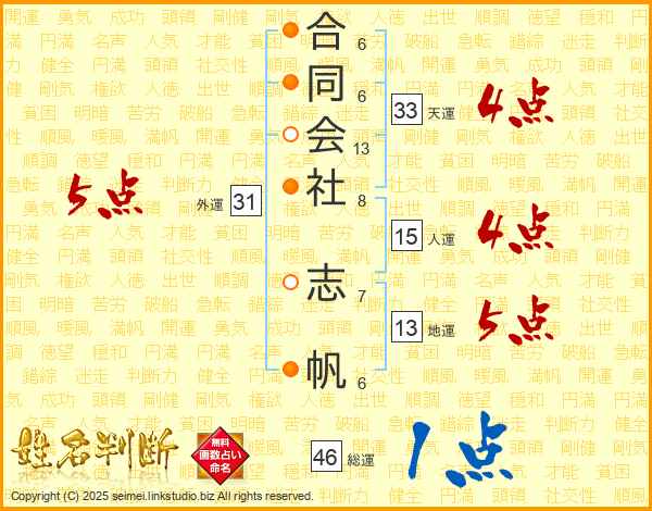 合(6画)同(6画)会(13画)社(8画) 志(7画)帆(6画)