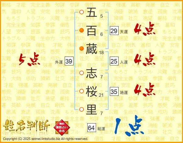 五百蔵志桜里さんの総運は64画の1点!
