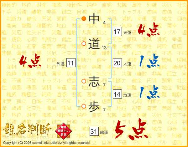 中道志歩さんの総運は31画の5点!