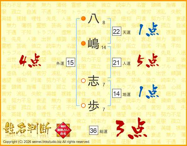 八(8画)嶋(14画) 志(7画)歩(7画)