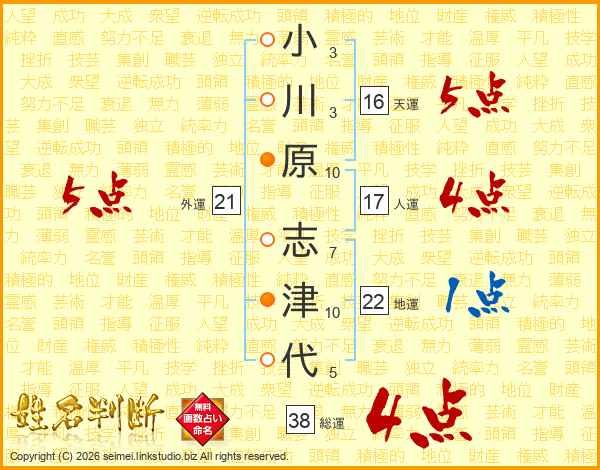 小(3画)川(3画)原(10画) 志(7画)津(10画)代(5画)