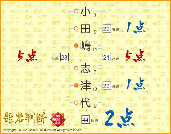 小田嶋志津代さんの総運は44画の2点!
