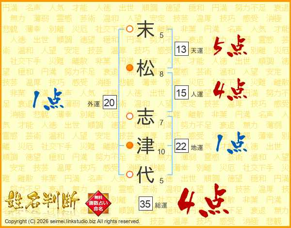 末(5画)松(8画) 志(7画)津(10画)代(5画)