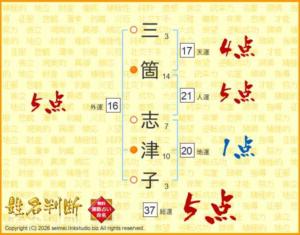三(3画)箇(14画) 志(7画)津(10画)子(3画)