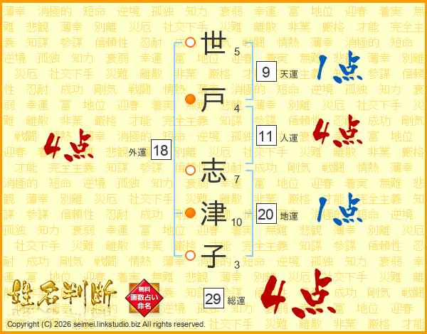 世戸志津子さんの総運は29画の4点!