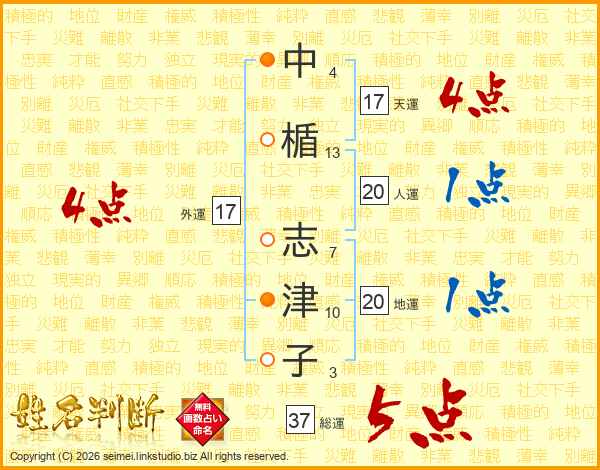 中楯志津子さんの総運は37画の5点!
