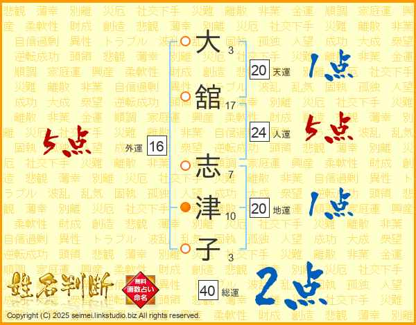 大(3画)舘(17画) 志(7画)津(10画)子(3画)