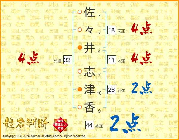 佐々井志津香さんの総運は44画の2点!
