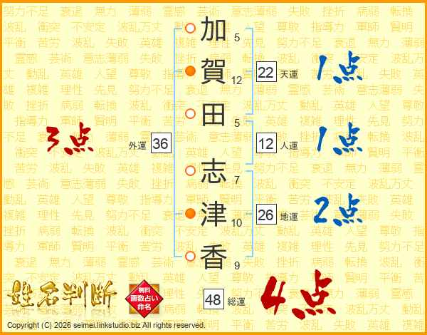 加賀田志津香さんの総運は48画の4点!