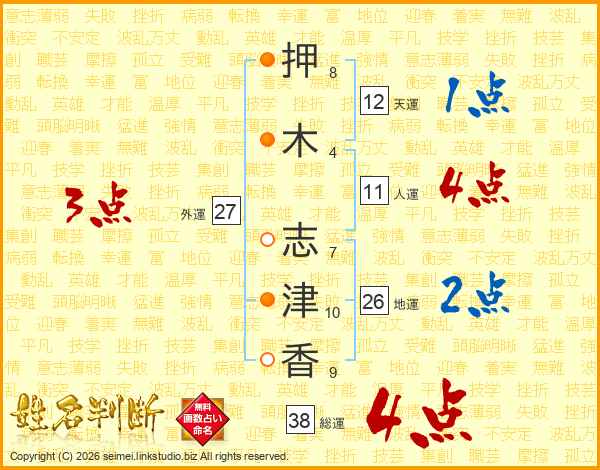 押木志津香さんの総運は38画の4点!