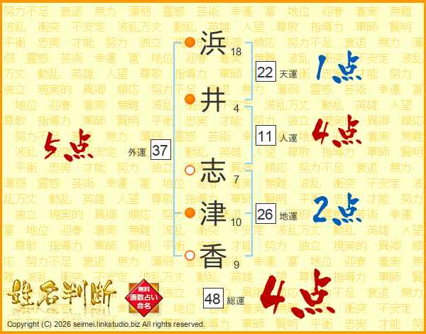 浜井志津香さんの総運は48画の4点!