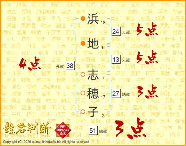 浜(18画)地(6画) 志(7画)穂(17画)子(3画)
