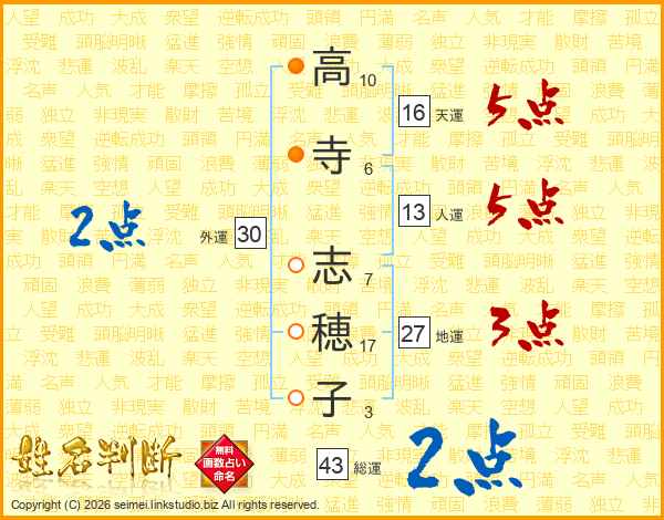 高寺志穂子さんの総運は43画の2点!