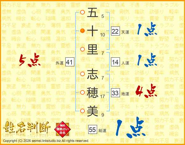 五十里志穂美さんの総運は55画の1点!