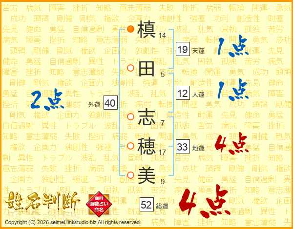 槙(14画)田(5画) 志(7画)穂(17画)美(9画)