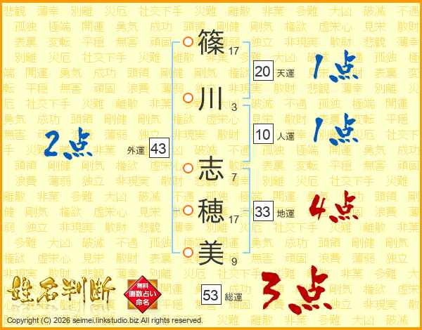 篠川志穂美さんの外運は43画の2点!