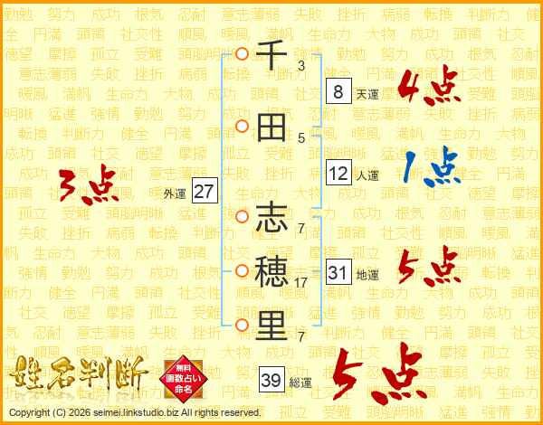 千田志穂里さんの総運は39画の5点!