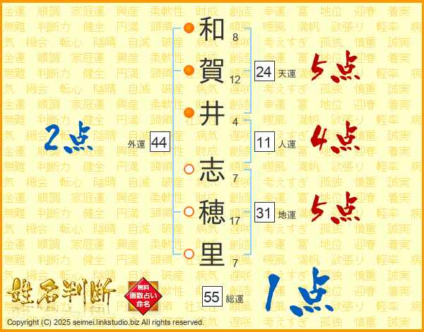 和(8画)賀(12画)井(4画) 志(7画)穂(17画)里(7画)