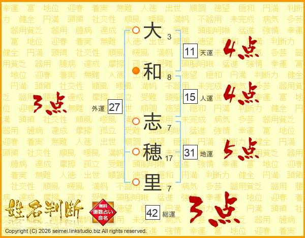 大(3画)和(8画) 志(7画)穂(17画)里(7画)