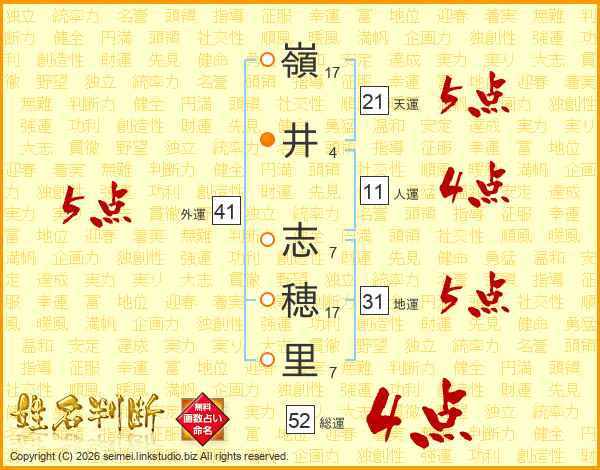 嶺(17画)井(4画) 志(7画)穂(17画)里(7画)