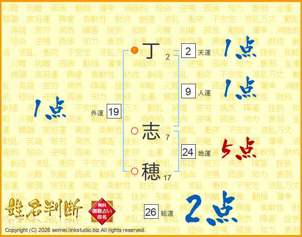 丁志穂さんの総運は26画の2点!