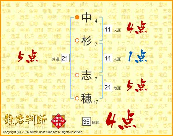 中(4画)杉(7画) 志(7画)穂(17画)