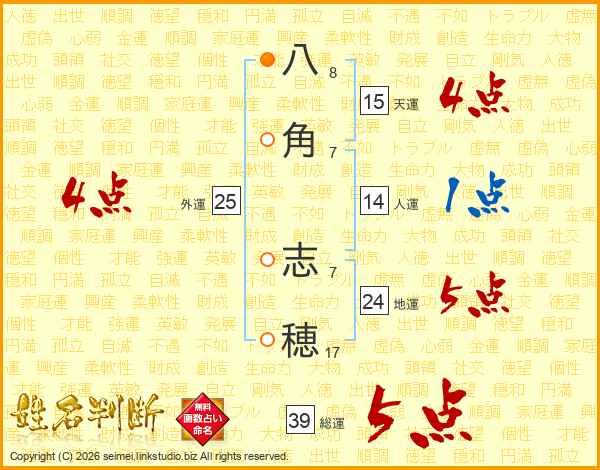 八角志穂さんの総運は39画の5点!