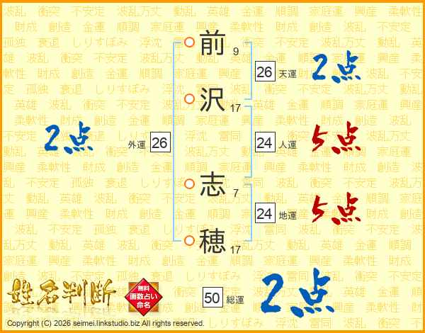 前(9画)沢(17画) 志(7画)穂(17画)