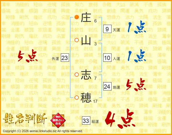 庄(6画)山(3画) 志(7画)穂(17画)