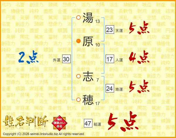 湯原志穂さんの総運は47画の5点!