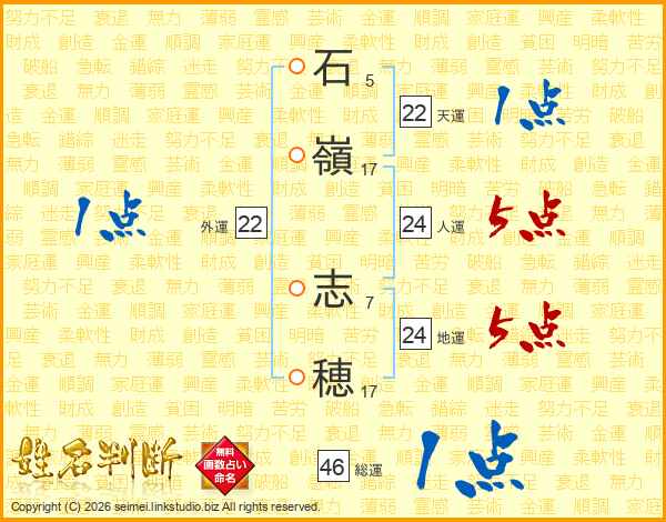 石嶺志穂さんの総運は46画の1点!