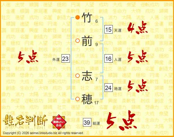 竹(6画)前(9画) 志(7画)穂(17画)