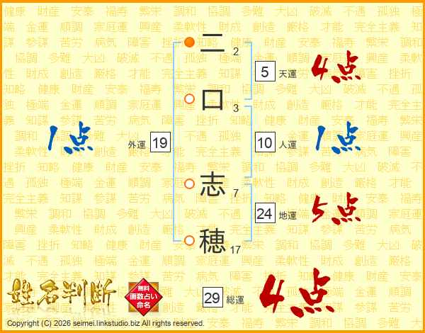 二口志穂さんの総運は29画の4点!