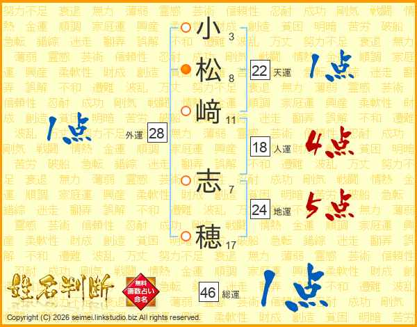 小松﨑志穂さんの総運は46画の1点!