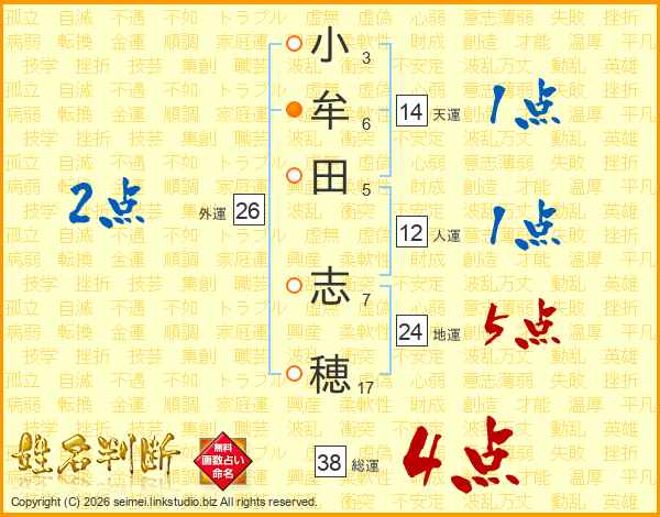 小(3画)牟(6画)田(5画) 志(7画)穂(17画)