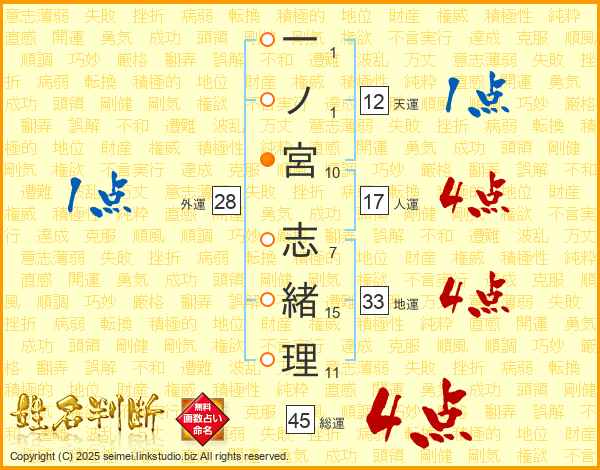 一ノ宮志緒理さんの総運は45画の4点!