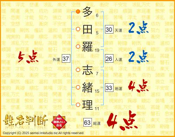 多田羅志緒理さんの総運は63画の4点!