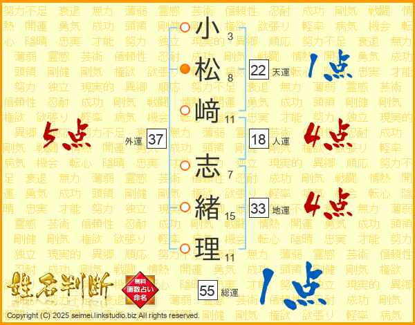 小松﨑志緒理さんの地運は33画の4点!