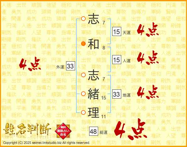 志(7画)和(8画) 志(7画)緒(15画)理(11画)