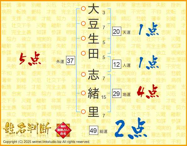 大豆生田志緒里さんの外運は37画の5点!