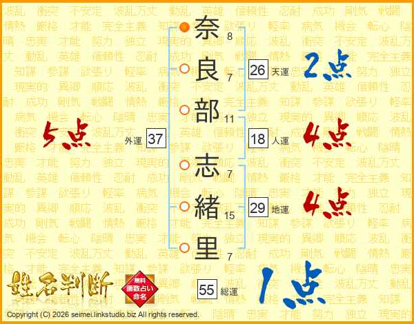 奈良部志緒里さんの天運は26画の2点!