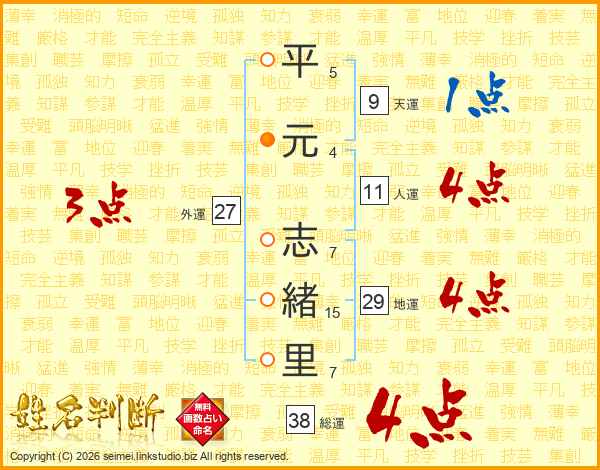 平元志緒里さんの総運は38画の4点!
