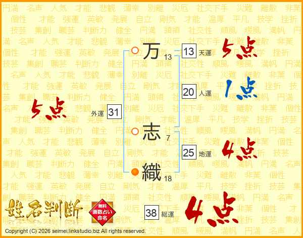 万(13画) 志(7画)織(18画)