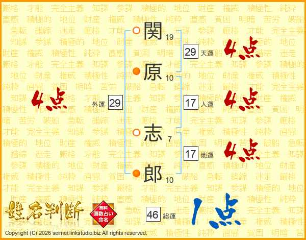 関原志郎さんの地運は17画の4点!